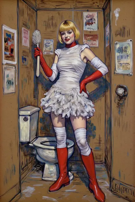 With Flux's strong bias toward realism and pretty people, the LoRA failed to capture the caricature nature of the original, but it does produce fun and interesting pastel on cardboard images.