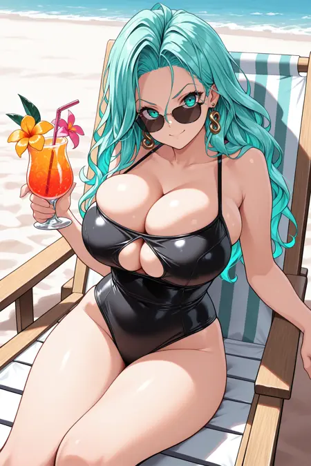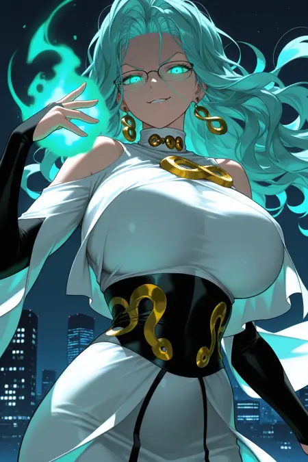 Trigger word is "opmpsy" and "aqua hair, wavy hair, long hair, aqua eyes" is mandatory.