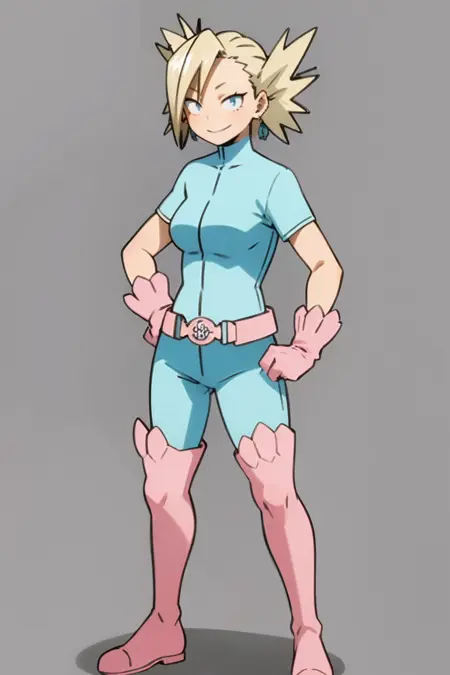 英雄服装提示词:bodysuit, earrings, pink boots, thigh boots, pink gloves, belt