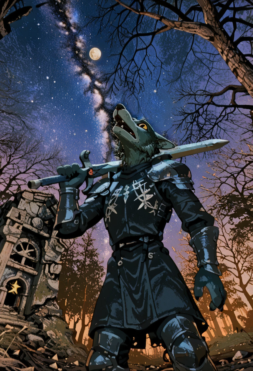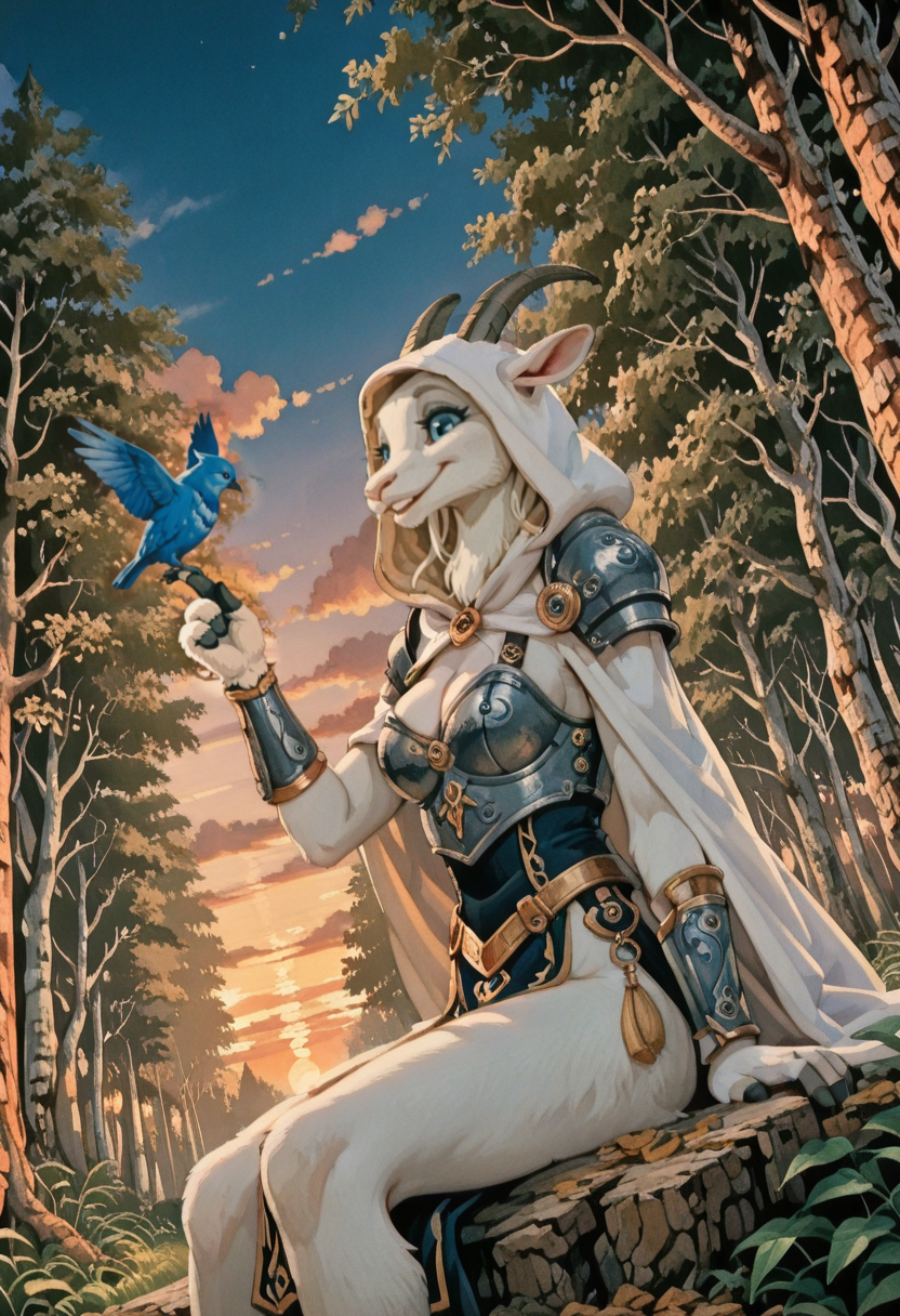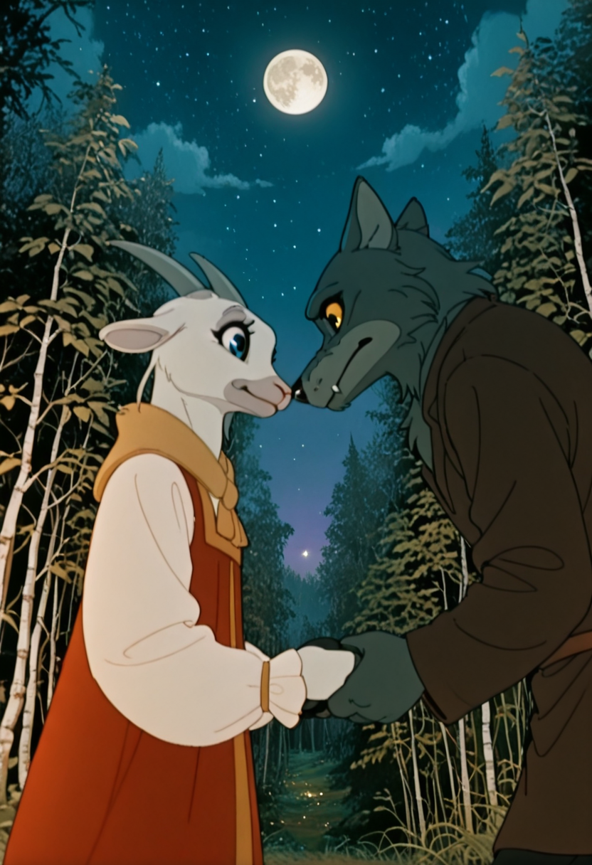 | Trained Words | g04t, 1girl, solo, furry, goat, blue eyes, white sclera, white fur, horns,Copied! red dress, long sleeves, yellow neckerchief,Copied! w0lf, 1boy, solo, male focus, furry, wolf, yellow sclera, grey fur, sharp teeth,Copied! brown shirt, blue pants, tail,Copied! |