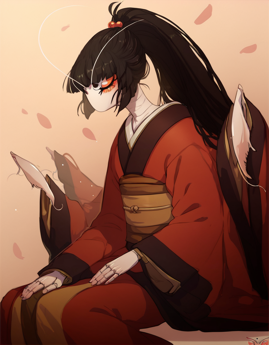 アクティベーションタグ: nae_mantis、黒髪、長い髪、ポニーテール