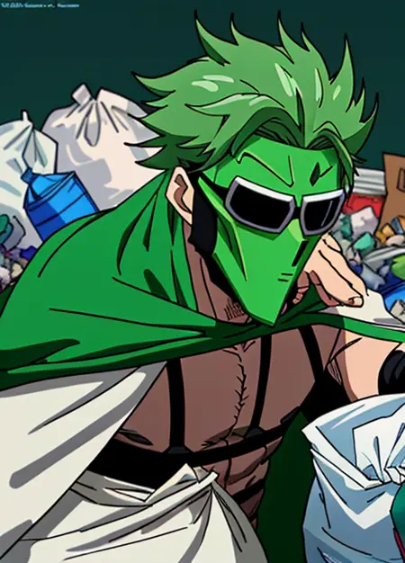 청소원의 사진을 사용하여 LoRA 모델을 구축했습니다. 이제 더욱 유사합니다) 더 나은 결과를 얻으려면 프롬프트에 "녹색 전신 마스크와 검은 집게, 검은 선글라스, 녹색 망토를 착용한 남자"를 사용하세요.