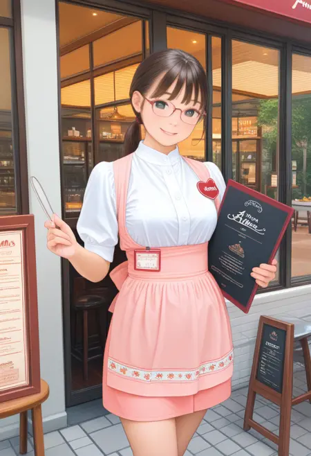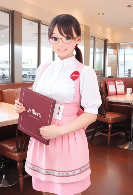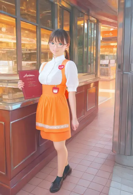 鼎盛时期,关东地区曾开设了20家门店,但因品川站周边的再开发,最后一家高轮店遗憾关闭。这是一家由井村屋公司打造的、提供美味派餐、制服可爱的餐厅。本LoRA或许能将这份回忆以插画形式呈现。