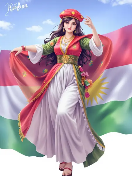 Womans Kurdish culture Clothes Fluxلۆرایەک کە مەشقی پێکراوە لەسەر جلی ئافرەتانی کوردی بۆ بەرهەم هێنانەوەی وێنە بەم جلانە