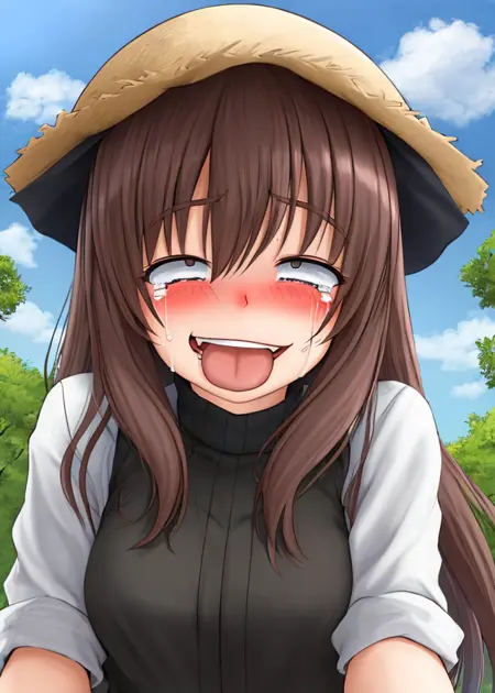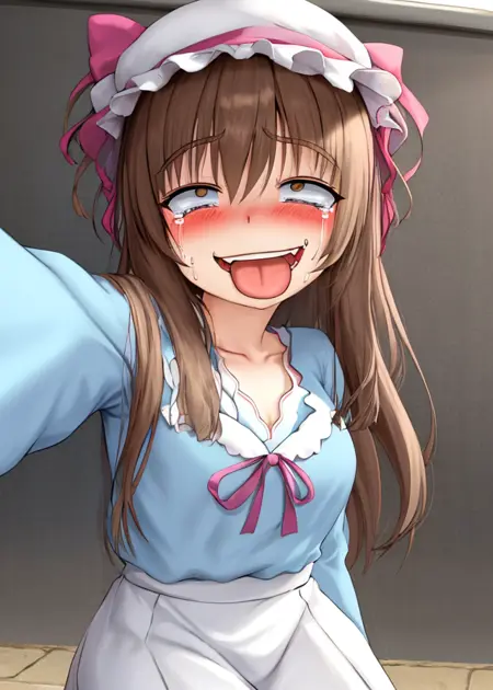 ,1女孩, 单人, 脸红, 微笑, 张开嘴, 舌头, 眼泪, ahegao, 笑着,