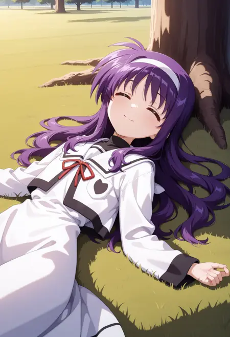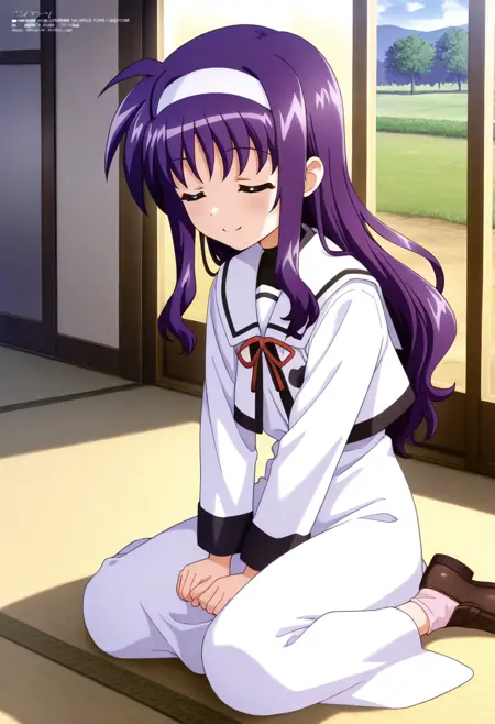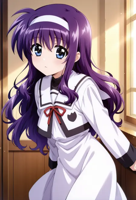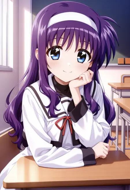 트리거 단어: c-tsukimura, 긴 머리, 보라색 머리, 파란 눈, 흰색 헤어밴드,