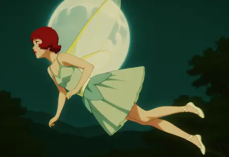 DreamAtsukoChiba,,short hair,brown hair, brown eyes,lips,lipstick,freckles,green dress, fairy, fairy wings,