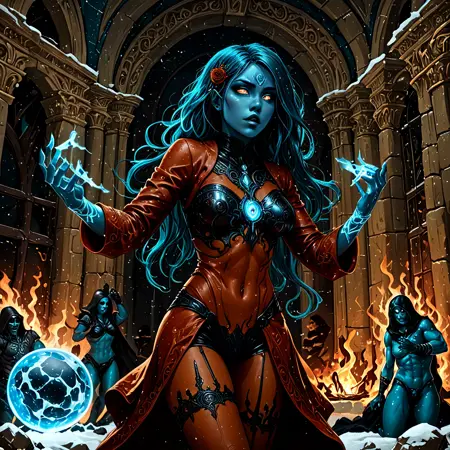 이 모델은 마법 에너지를 다루는 주제를 그립니다. 이는 일반적으로 손에서 발산되거나 몸 주변을 휘돌아가는 색깔 있는 빛의 구체와 구름으로 표현됩니다.
