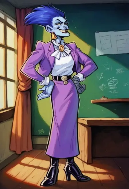 1990年に短命で放送された同名のアニメシリーズ『グレイブデール・ハイ』に登場する、モンスターのための学校の、文字通り鉄の手綱を握る校長。主役をリック・モラニスが演じたことで主に記憶されている。私が手に入れた最高品質のスクリーンキャプチャから訓練されたが、その品質はそれほど良くなかった。
