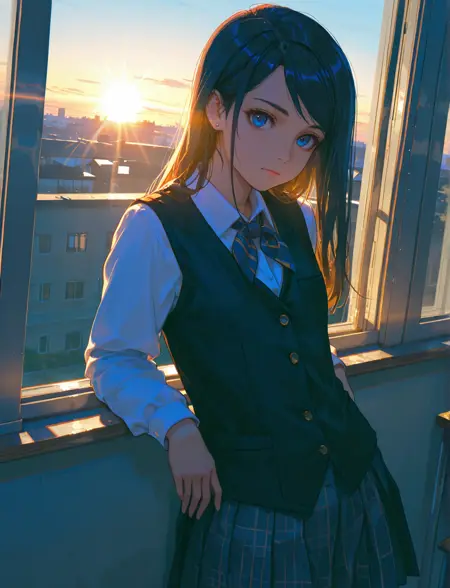 권장 가중치: 0.65-0.85. 트리거: Polina_TB, 학교 유니폼, 검은 조끼(색상용)