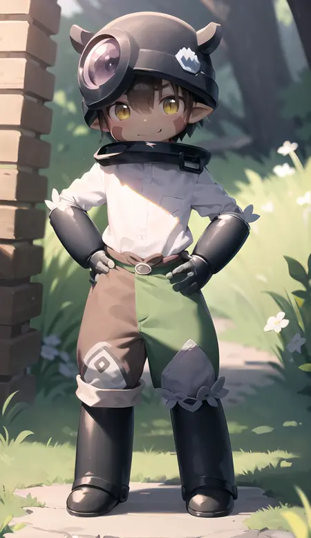 regu (made_in_abyss), ヘルメット, 黄色い目,