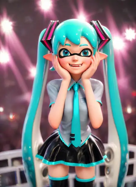Splat Fusion is a PonyXL model that actually happens to be my very first trained checkpoint/model in general. This model focuses on generating Inklings, Octolings and the Splatoon idols (check model info for supported characters). This model was trained ONLY on official splatoon 2/3 screenshots and renders... mainly images from Inkipedia, No fanart is included in the dataset.