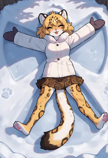 主要触发词:snongel, 仰卧, 背部朝上, 雪