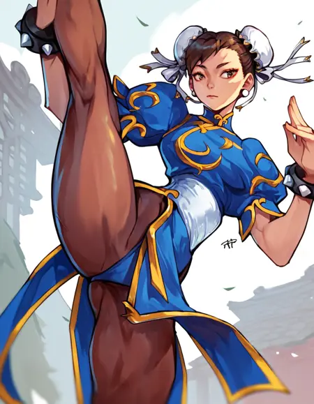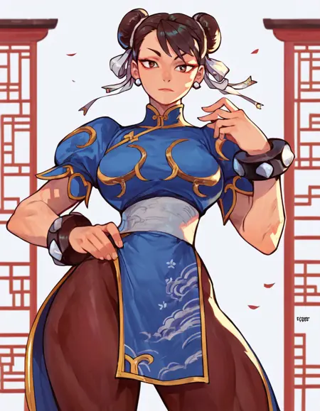 • good tagging format: score_9, score_8_up, score_7_up, score_6_up, score_5_up, score_4_up, ,chun-li_streetfighter, jewelry, double bun, hair bun, Chinese clothes, brown leggings, action/description, background type, extra tags
