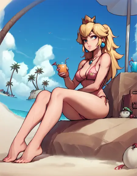 アクティブタグ: princess_peachez, 1girl, ブロンドヘア, 青い目
