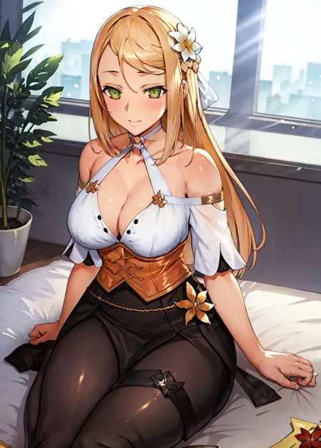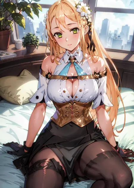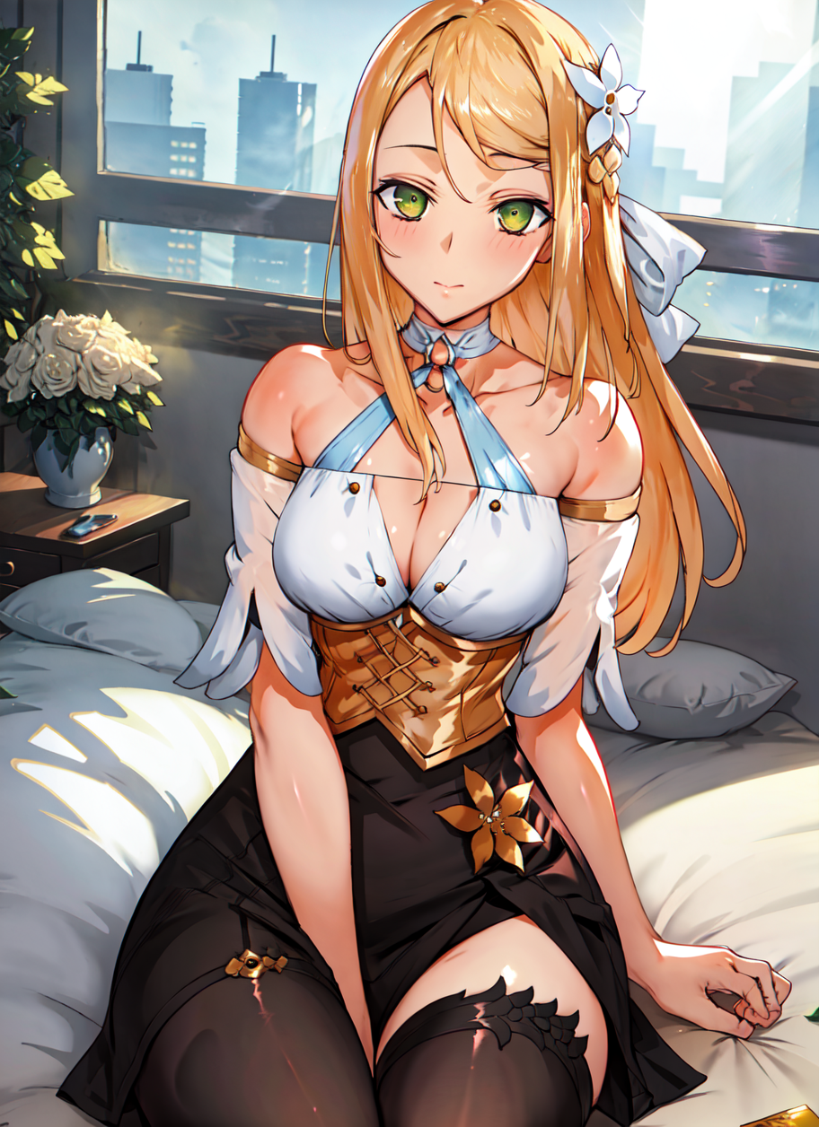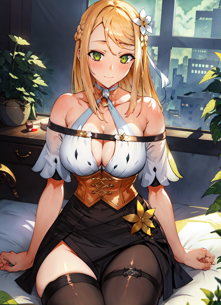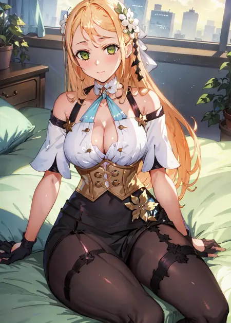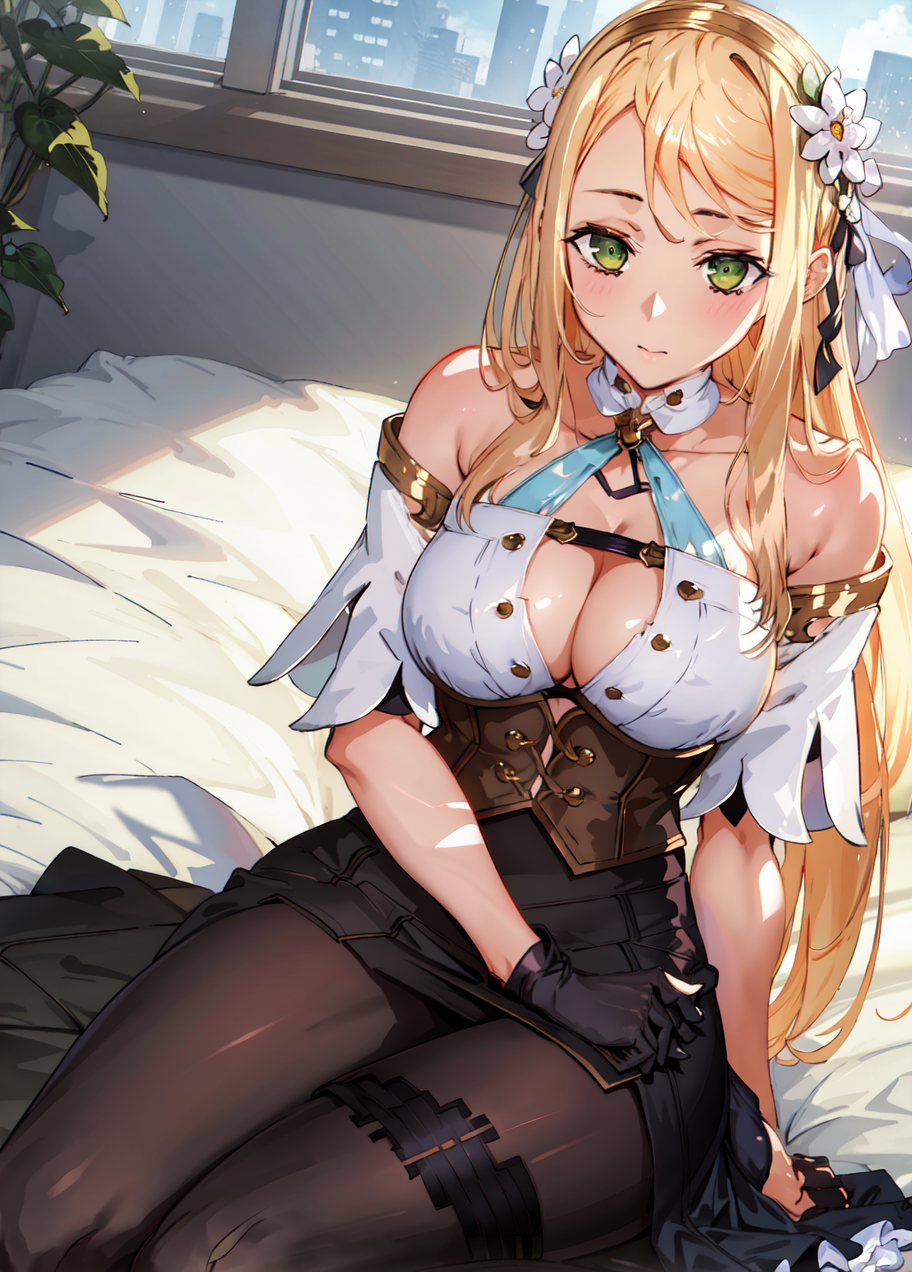 팬티하이스, 사이드 슬릿, CL 소녀, 코르셋, 중간 크기 가슴, 검은 치마, 클리브리지, 허벅지 스트랩, 셔츠, 장갑, 벌거벗은 어깨, 긴 치마,