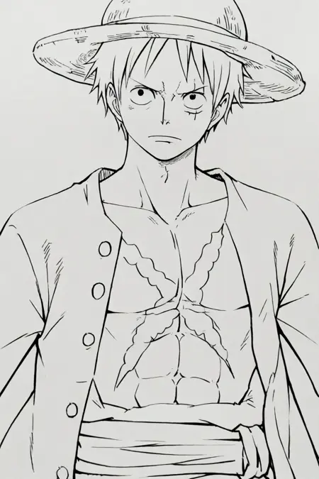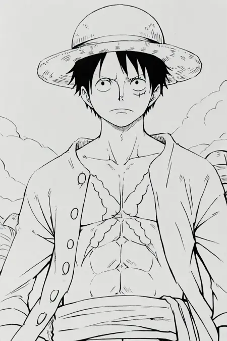 また、「黒い髪」を避けて髪の色を無彩色にしたい場合は、「白い髪」というタグを使用できます。例としてルフィの2つの画像を掲載します。