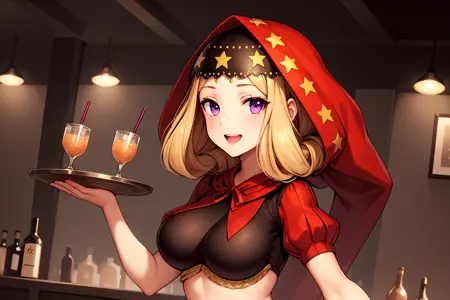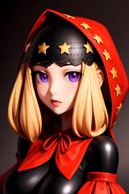 이 캐릭터를 프롬프트로 사용하려면 "lora:Velvetv3:strength벨벳, 빨간 헤드드레스, 빨간 부풀어 오른 소매가 있는 검은 크롭탑, 별 모양 헤어드레스, waist 캡, 세로 줄무늬 스타킹, 높은 굽 신발"을 입력하세요.