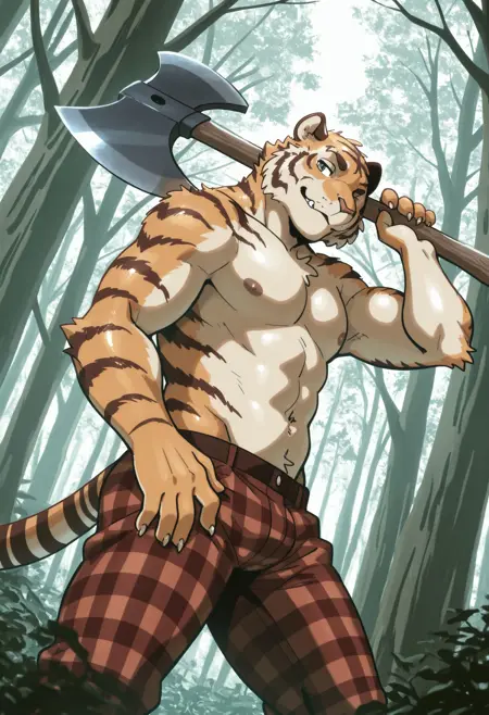 Illustrious: best quality, amazing quality, very aesthetic, absurdres, newest, by fruitz, furry, furry male, 1boy/2boys, solo/duo, bara, looking at viewer, ...your tags...