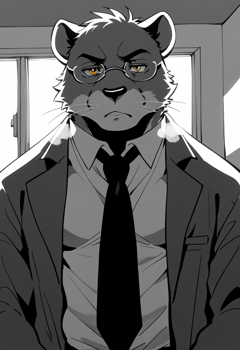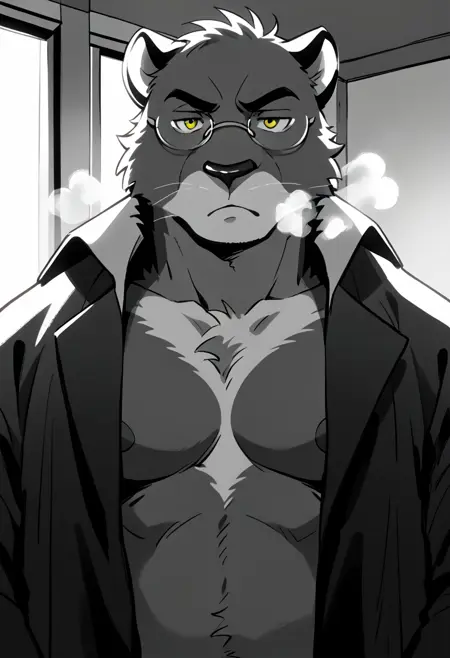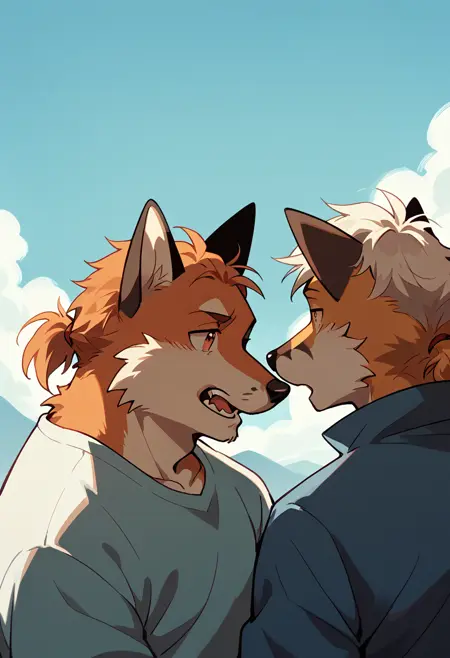 Illustrious: best quality, amazing quality, very aesthetic, absurdres, newest, by fruitz, furry, furry male, 1boy/2boys, solo/duo, bara, looking at viewer, ...your tags...