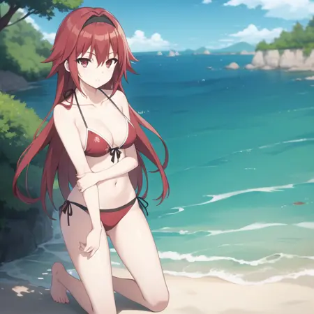 触发词:bofuri-mii,红发,红眼,长发,红色斗篷连体长靴手套无袖
