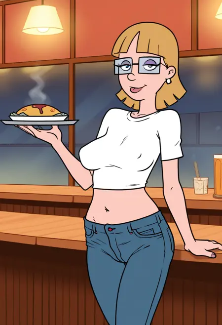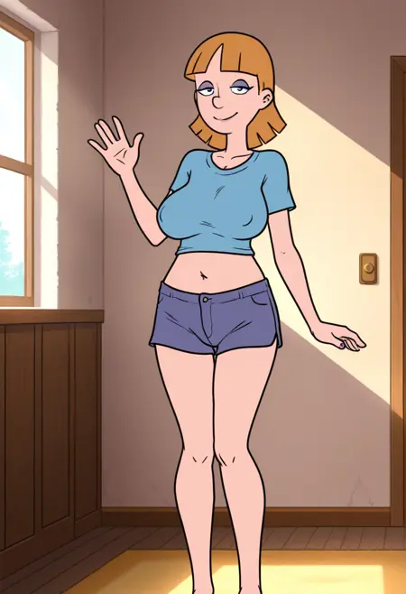 米里亚姆·帕塔基(来自卡通《嗨!阿诺德!》)的同人艺术风格。此图融合了多个来源,为委托AI模型设计。