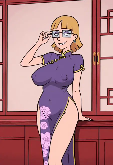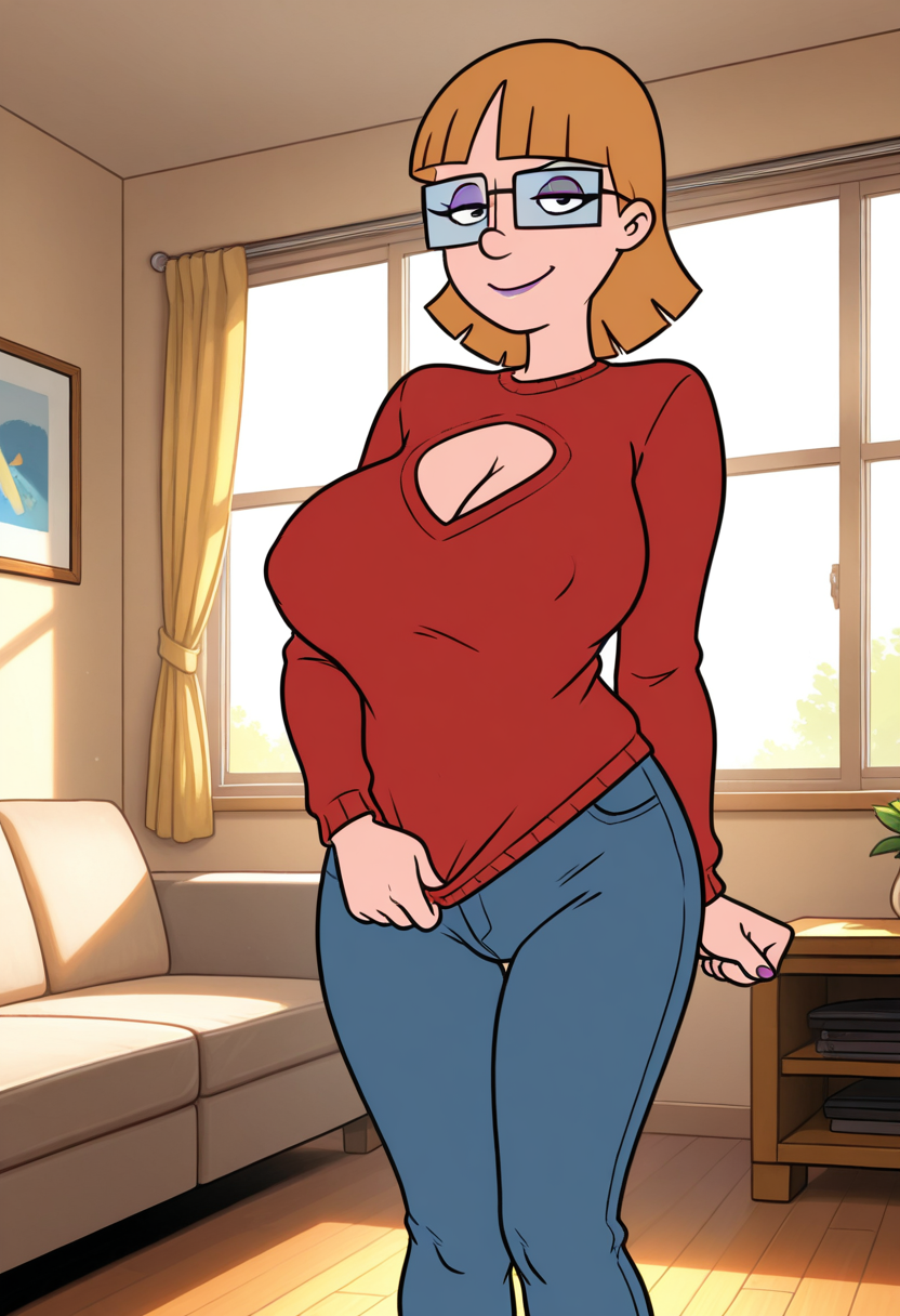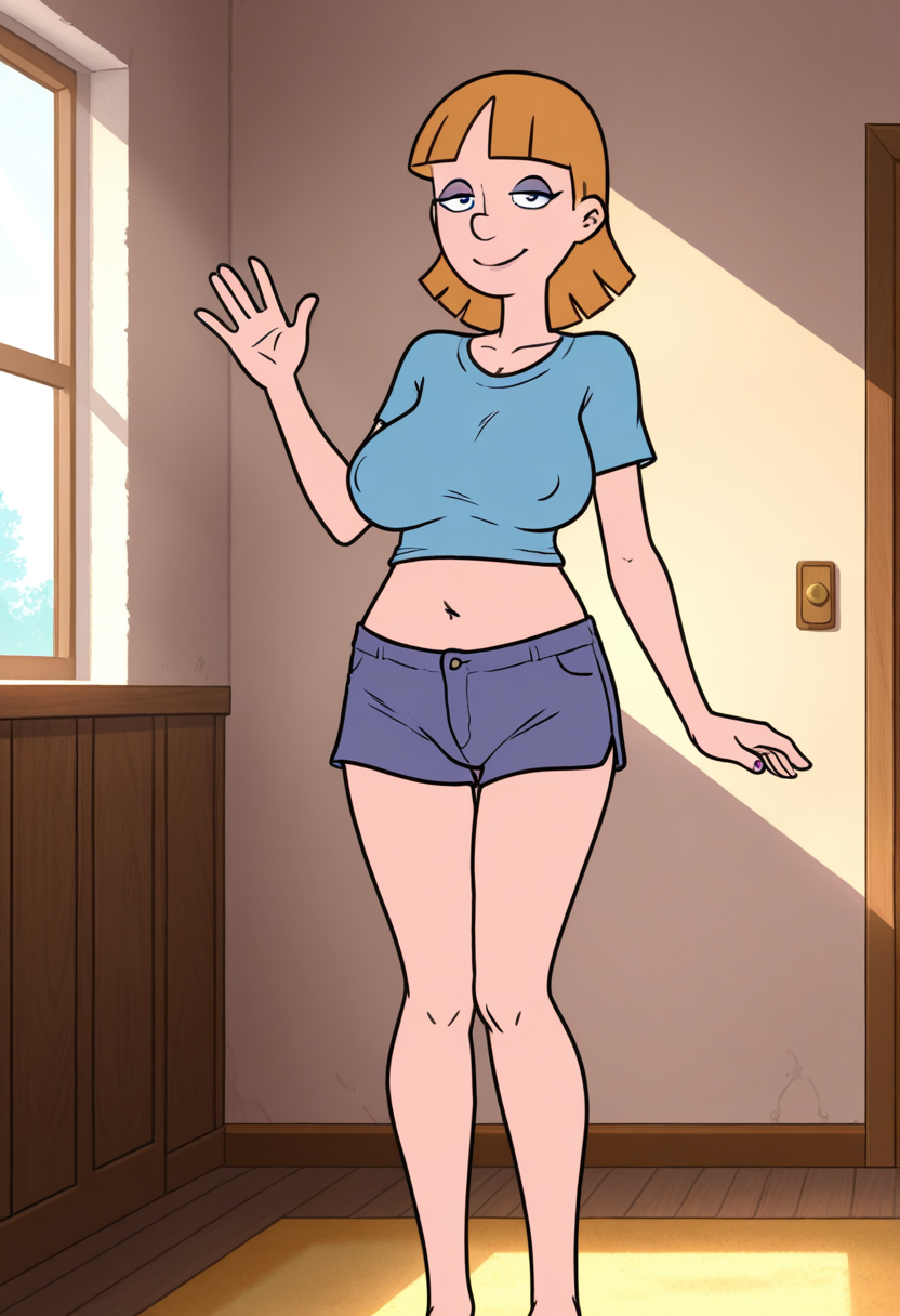 Miriam Pataki (from the cartoon Hey Arnold!) in Fan Art Style. Blended from a few sources for this. Commissioned AI model.