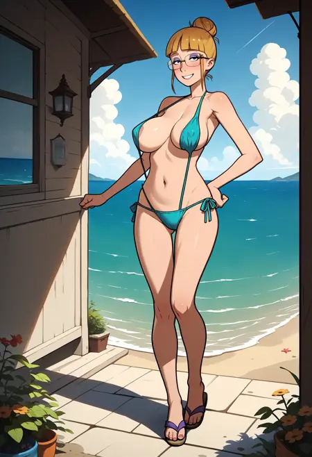 Miriam Pataki (from the cartoon Hey Arnold!) in Fan Art Style. Blended from a few sources for this. Commissioned AI model.