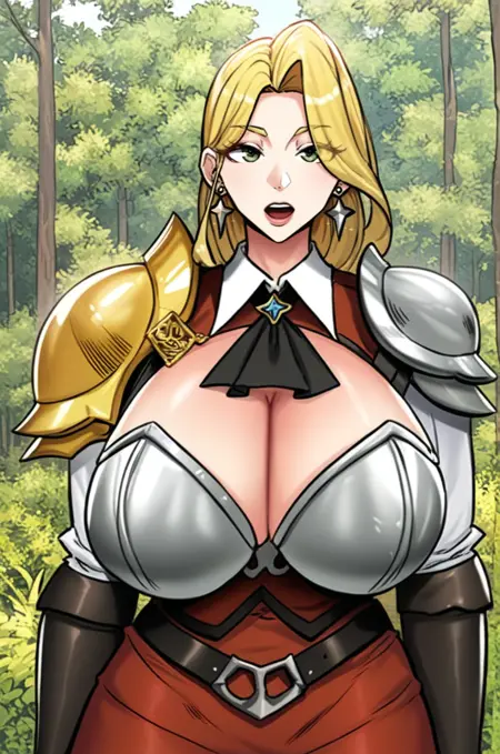 주요 태그: 1girl, ariana, blonde hair, long hair, green eyes, star earrings, huge breasts, mature female, midriff