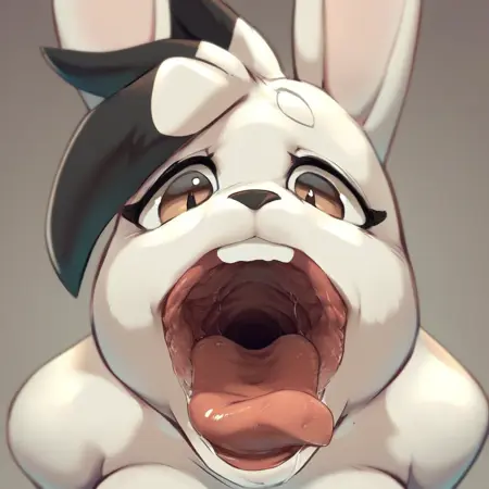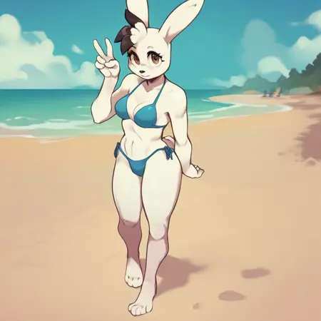 Rabbit, bunny girl, white fur, white and black fur, brown eyes, long ears, medium breasts,