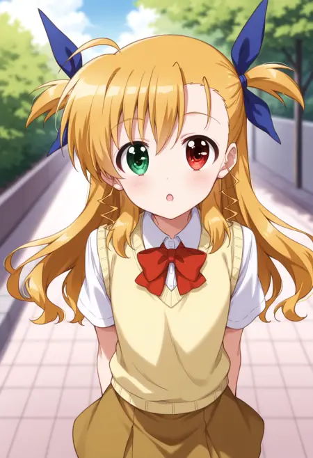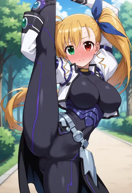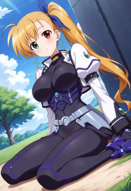 트리거 단어: c-vivio, 긴 머리, 양옆으로 올린 머리, 금발, 이채색안구, 평평한 가슴,