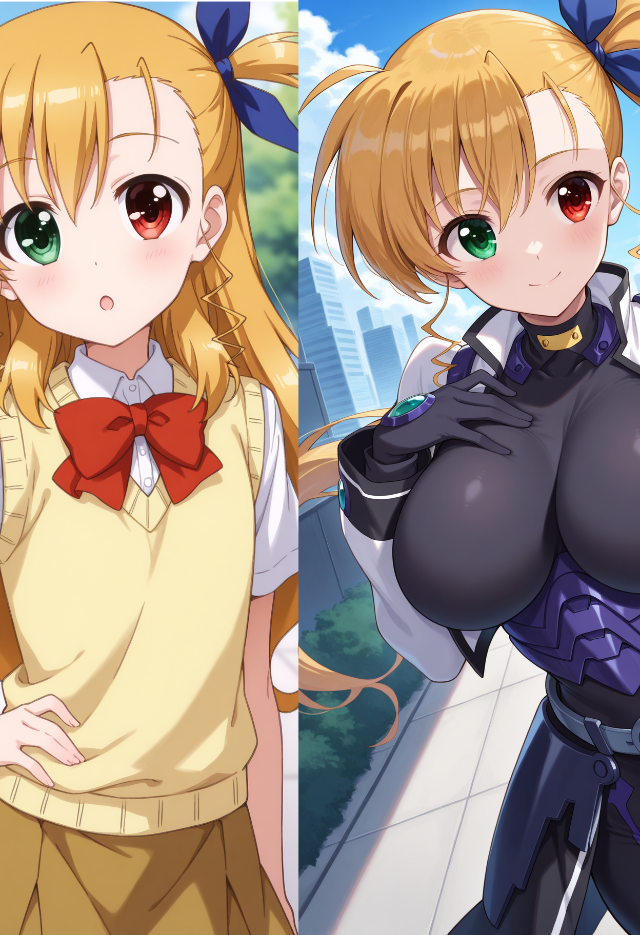 트리거 단어: c-vivio, 긴 머리, 한쪽 고깔머리, 금발, 이채색안구, 머리 리본, 성숙해진 외모, 큰 가슴,