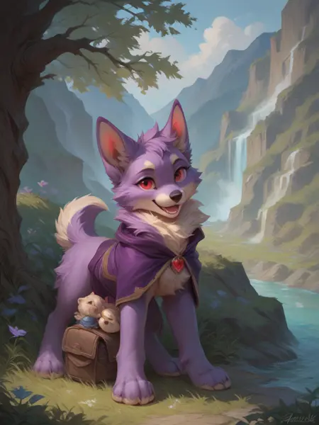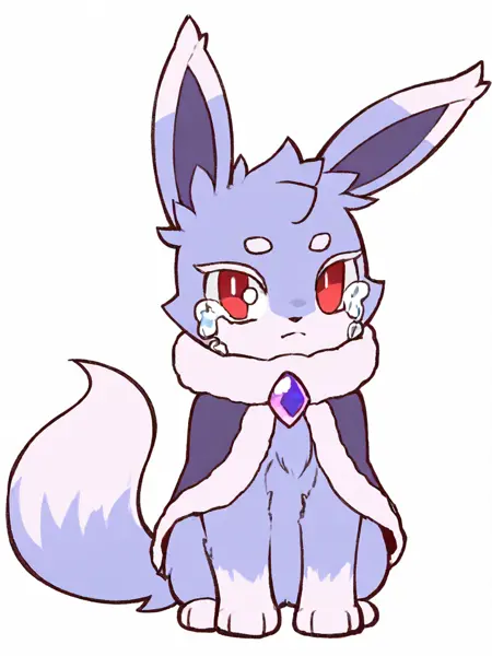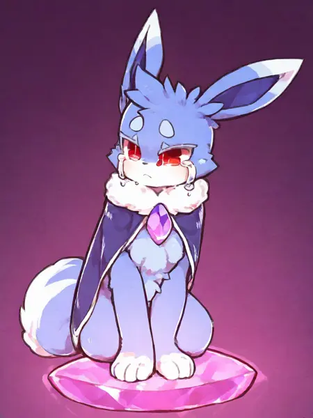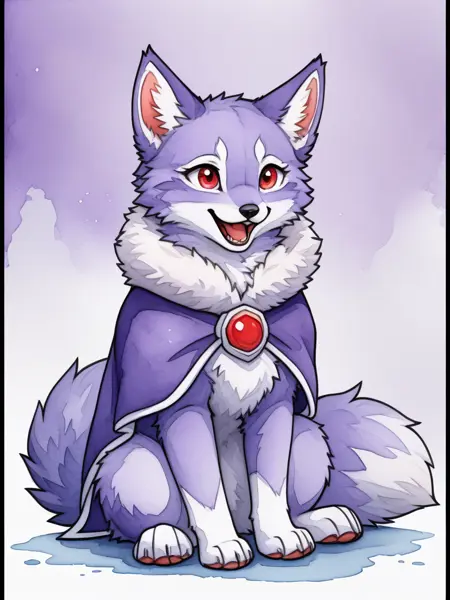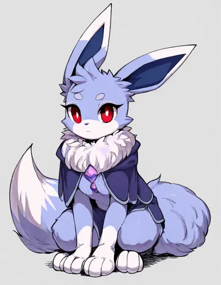 nox_(pal), Periwinkle fur,purple chest crystal,capelet, red eyes,