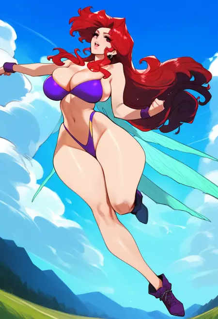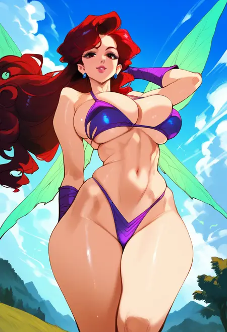 트리거: silkcotton, 긴 머리, 분홍색 머리 여자, 큰 가슴, 젖가슴 노출, 비키니, 하이레그, 날개, 요정