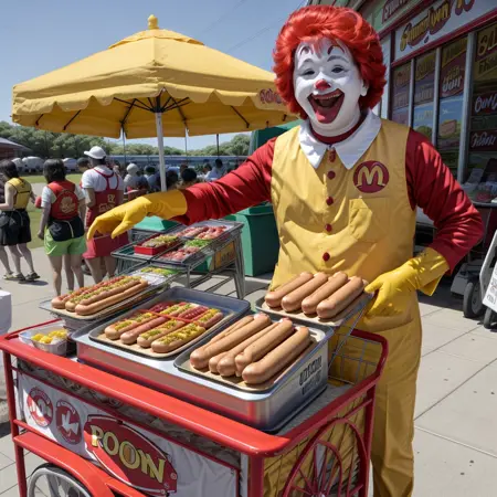 This is a Lora of the clown mascot recently dropped by a major restaurant corporation. It works best at 0.9 strength and needs usually more than 20 steps to resolve the face. have fun. This model is available for parody and satire purposes only.