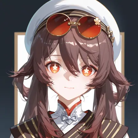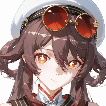 hu tao \(cherries snow-laden\) \(genshin impact\), 1girl, eyewear on head, tinted eyewear, white hat,white clothes,