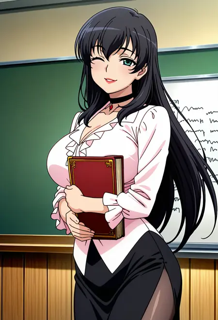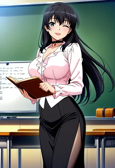 Recommend Prompts (clothing②):black choker, white blouse,long skirt, black skirt,side slit,pantyhose,high heels,