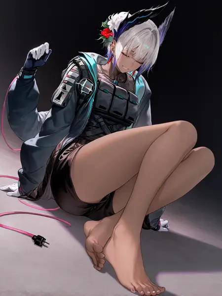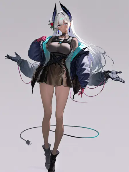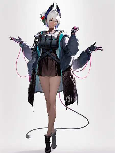 标签:raidian\(arknights\),dark-skin female,electric plug tail,