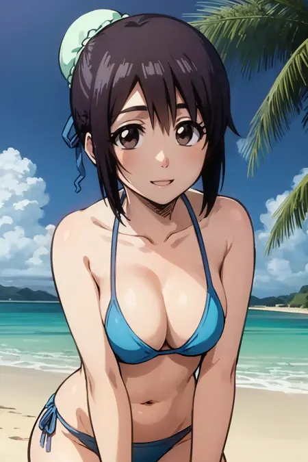 漂白提示词:1girl, momohinamori, 黑发, 单发髻, 发髻罩, 棕色眼睛