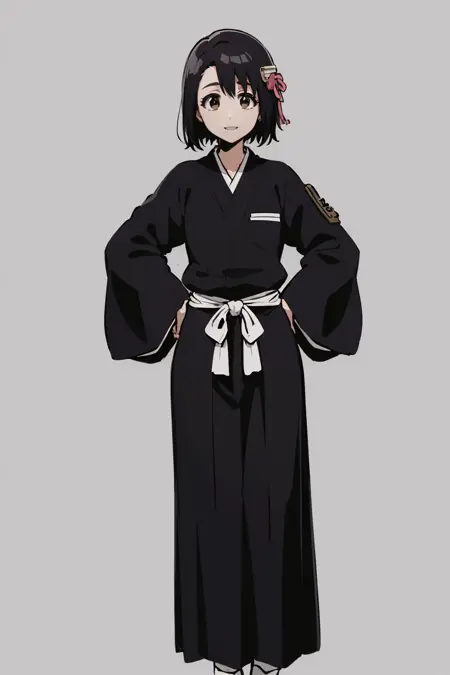 服装提示词:和服,黑色袴,袴裙,黑色和服