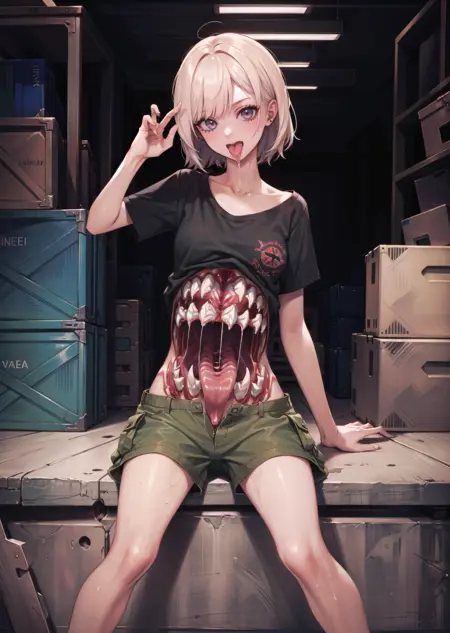 モンスターガール、追加の口、鋭い歯、ボディホラー、