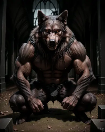 , macabre style ,best quality, masterpiece , realistic, photo, <lora:wereWolfQuiron_v05i05e15t05nr77na77ada_Lora:1> werewolfQuiron, muscle, . dark, gothic, grim, haunting, highly detailed,
