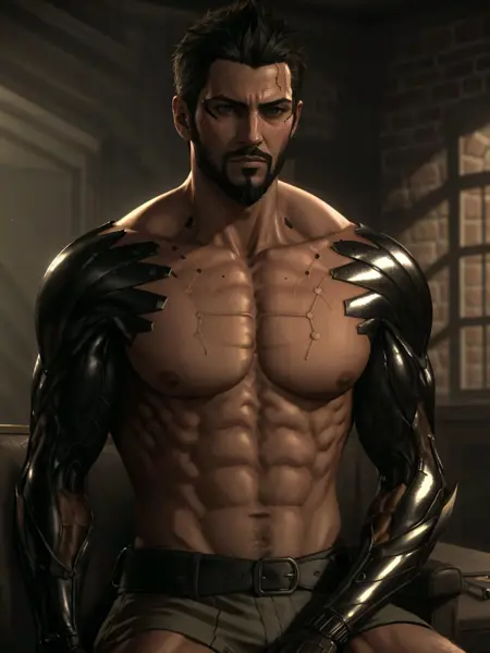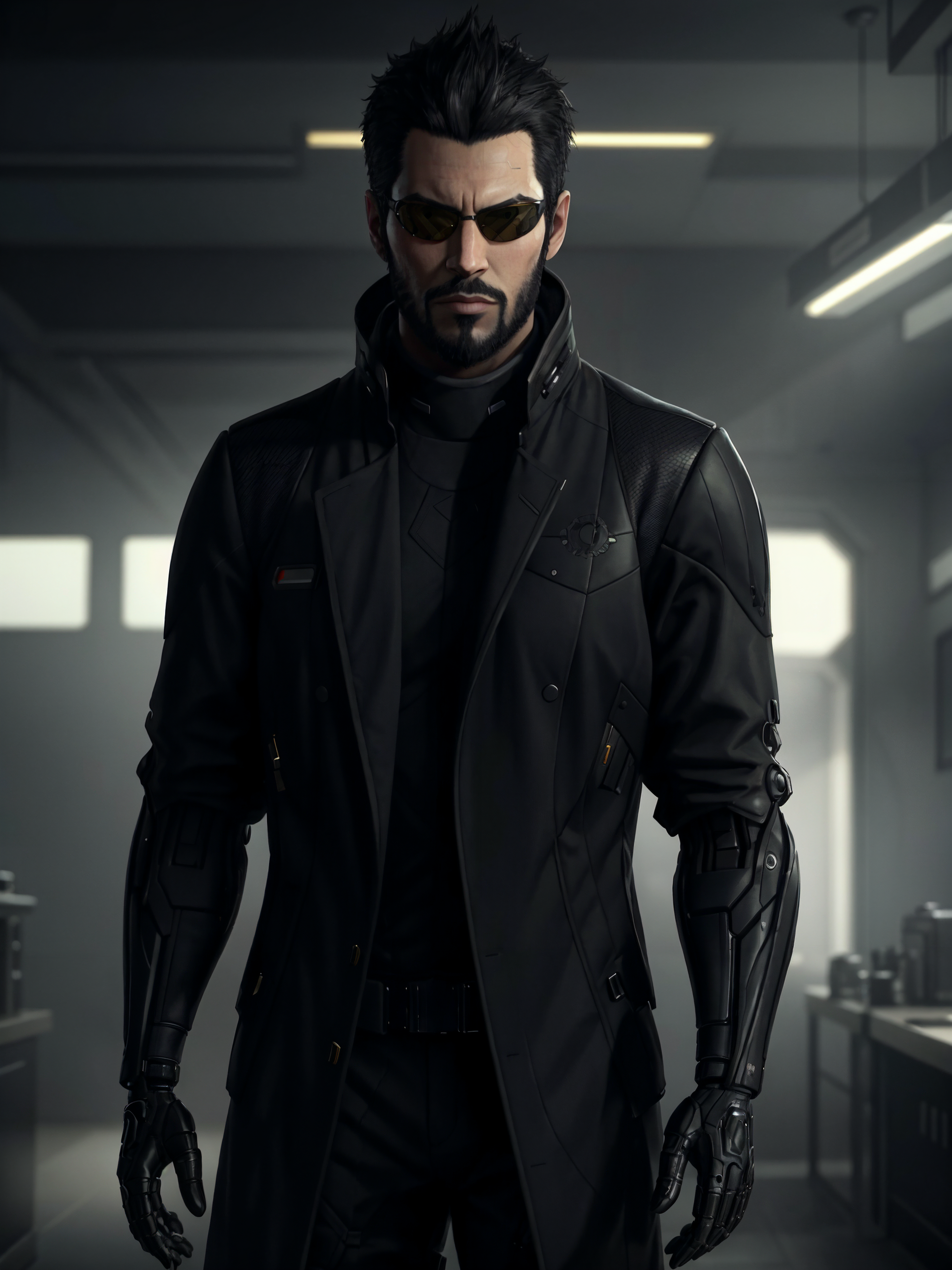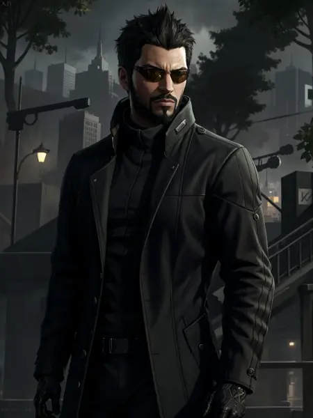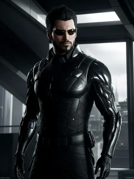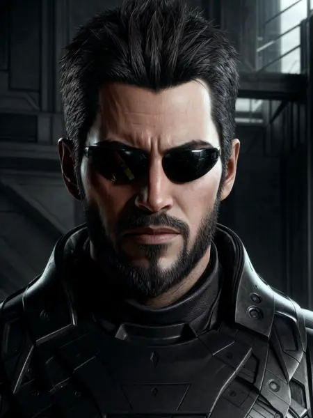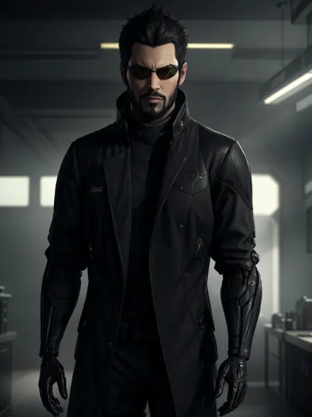 示例提示:talojiadamjensen 戴墨镜 穿着装甲 站在房间里 / 赤裸上身 talojiadamjensen 不戴墨镜 坐在房间里 / talojiadamjensen 戴墨镜 穿着外套 站在街上。