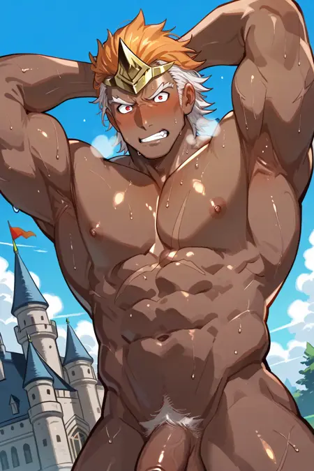 base: helbindi_feh, multicolored hair, red eyes, dark skinned male,