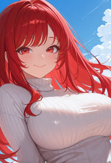 raprdf,红眼睛,红发,长发,刘海,大胸部