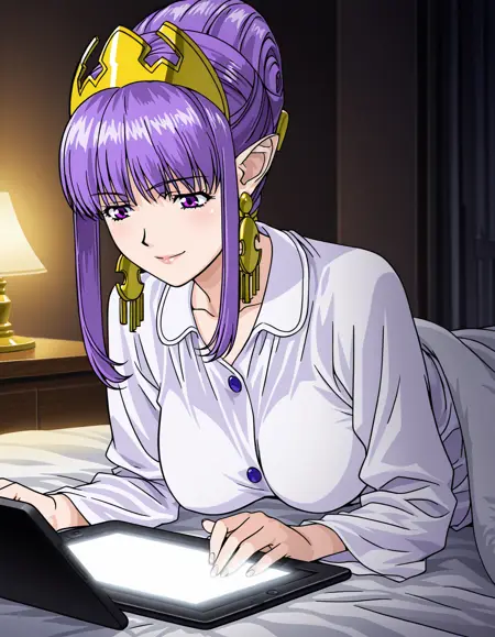 - julietta、紫の目、王冠、イヤリング、白いドレス、ふわふわの袖
