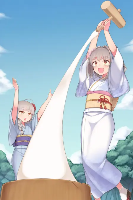 mochitsuki, mochi, mortar \(bowl\), holding mallet, mallet,