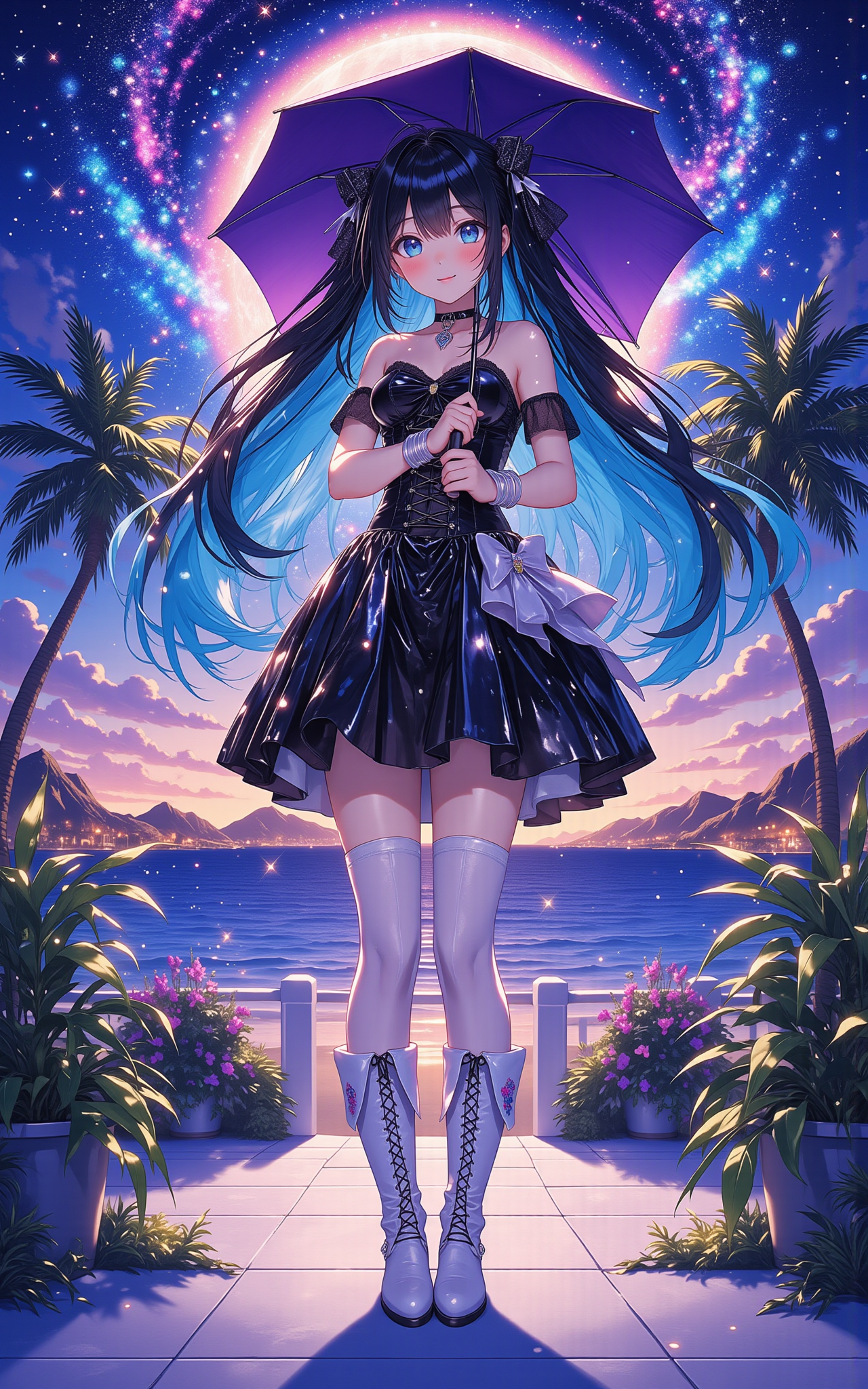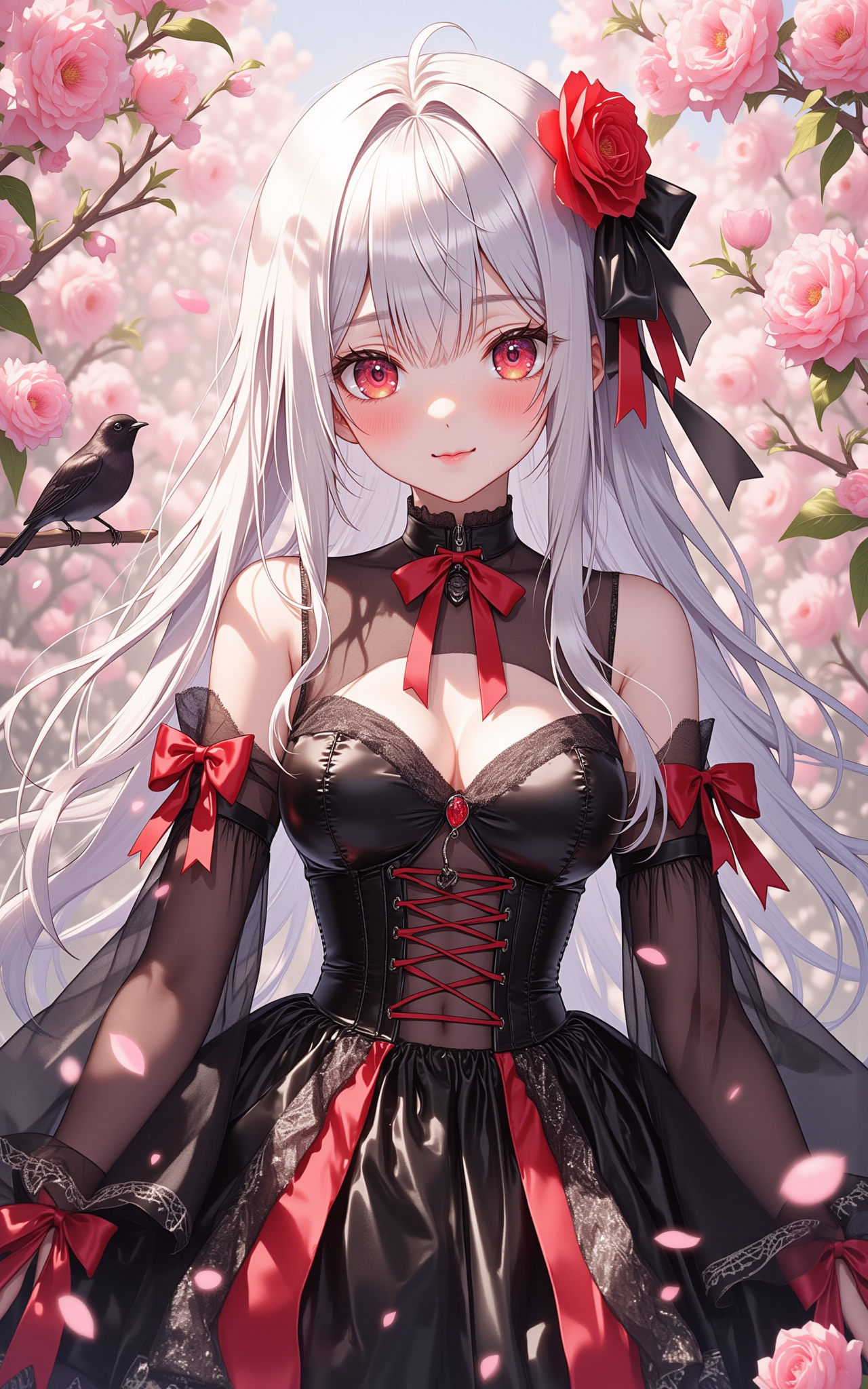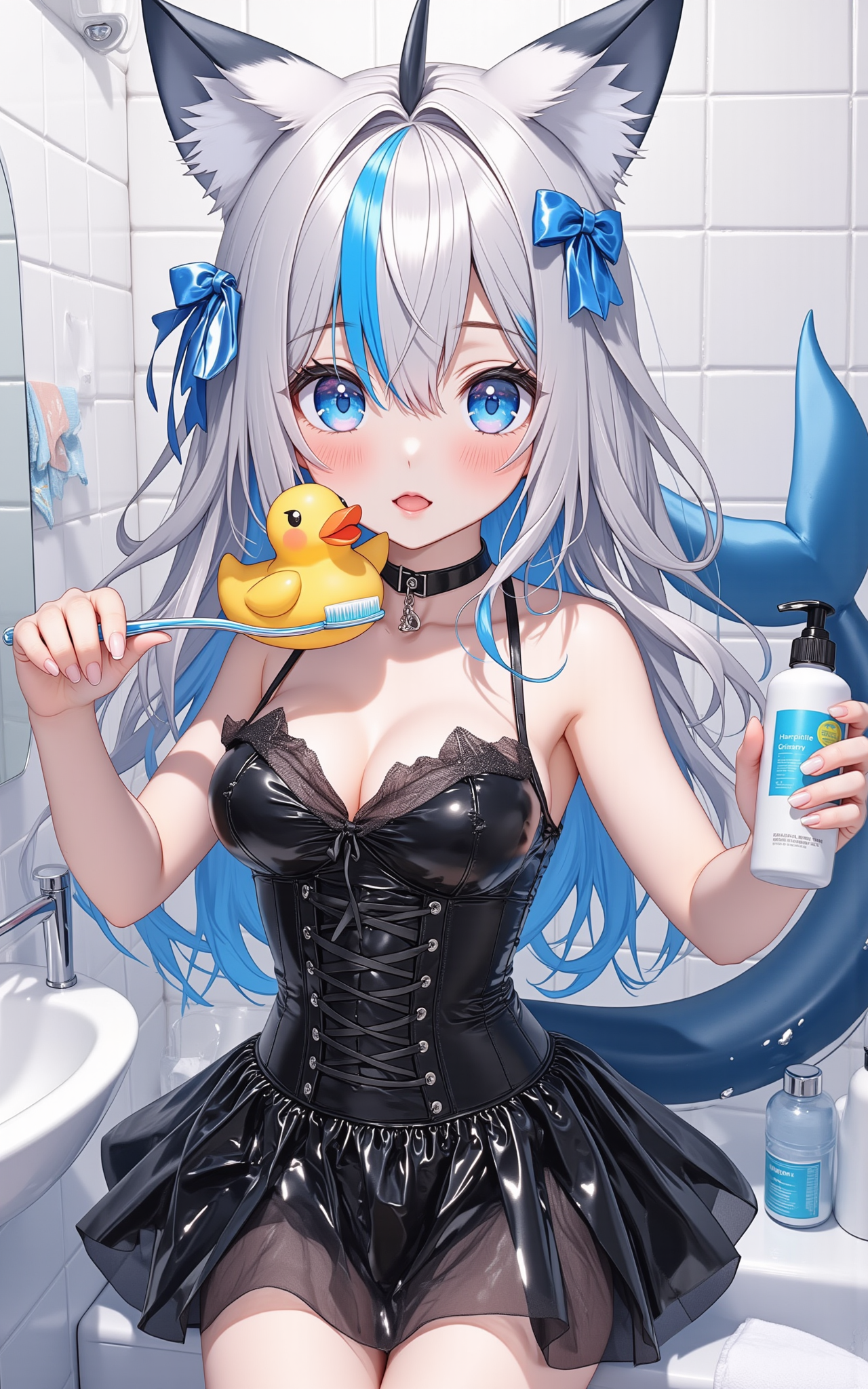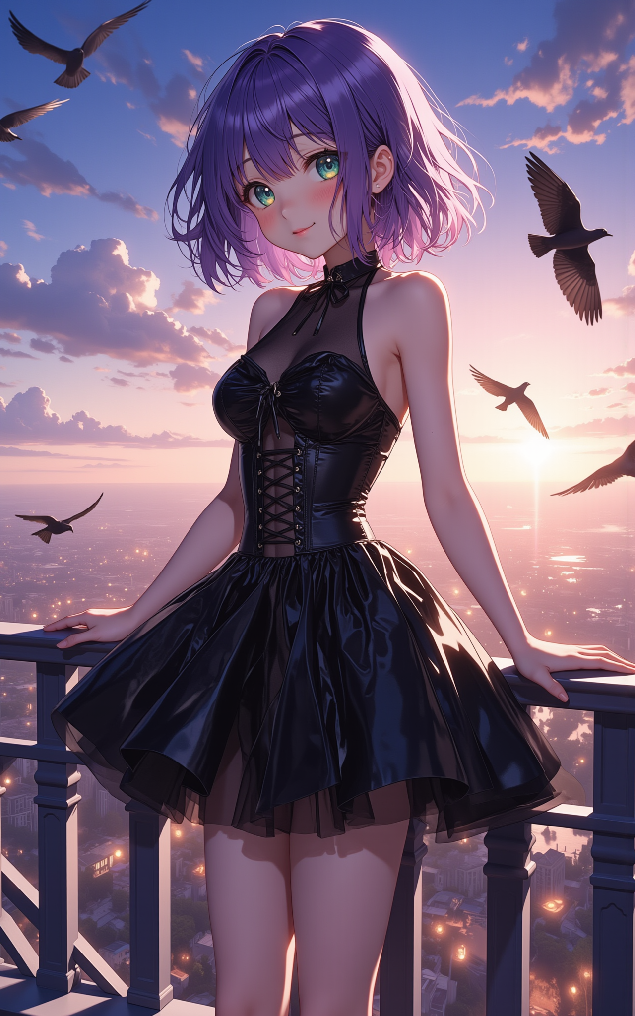 프롬프트 단어는 매우 중요합니다. 이 옷을 재현하려면 세부적으로 묘사하는 것이 좋습니다. 제가 작성한 내용은 다음과 같습니다: 허리와 가슴 부분에 레이스 장식이 있는 검정색으로 반짝이는 비닐 코르셋 스타일의 드레스. 이 옷은 전胸前부에서 목까지 레이스로 만들어졌으며, 앞면에 튜투를 추가하는 것도 허용됩니다.
