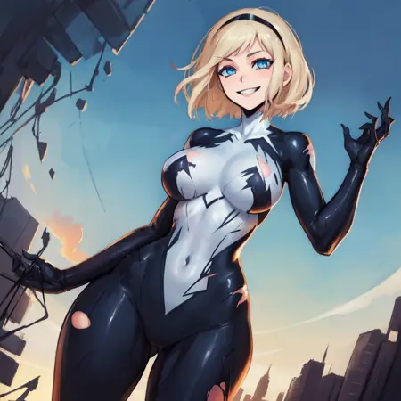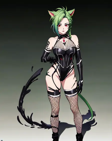 これは私の最初のLoRAです。不備がある場合はご容赦ください。トレーニング画像にベノム・グウィンなどが含まれているため、Spider-Gwenなどのスパイダーヒーロー系やベノム系のトリガーまたはLoRAと組み合わせるとより効果的です。特定のキャラクターを選択するには、green_hair、cat_ears、cat_tail などのキャラクターの特徴を入力してください。