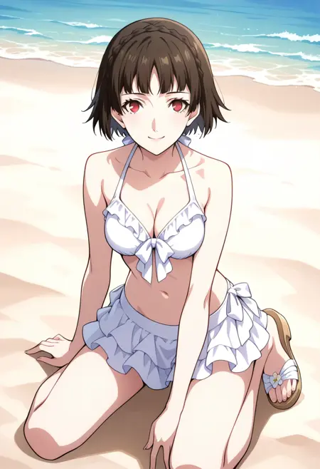 p5makoto-swim, swimsuit, bikini, frills, white bikini, bikini skirt,